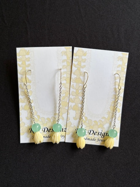 Blue/Green Frosted Pearl & Pikake Chain on Silver