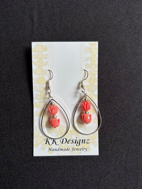 Teardrop Pink Crown Flower on Silver